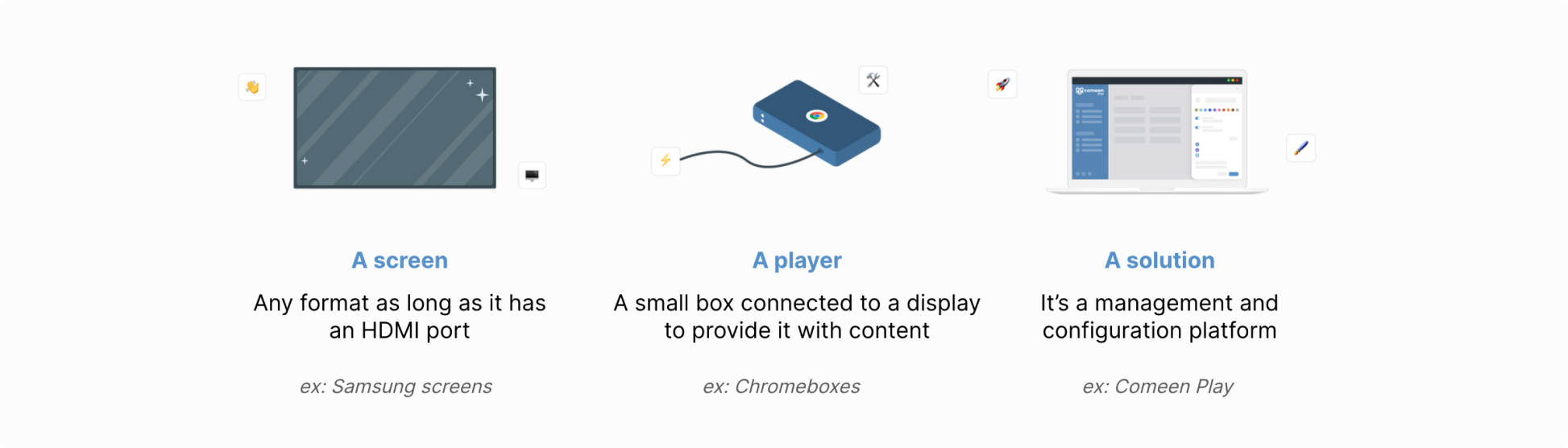 Some digital signage solution — like Comeen Play — integrate directly the ChromeOS remote management so you can create your digital signage, deploy your screen fleet and manage it all-in-one place easily 🌎